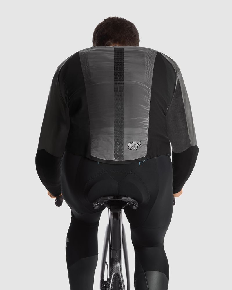 Unsere neue zweilagige Silver Storm Membran ersetzt das ursprüngliche Silver Haze Material an Vorder- und oberem Rückenbereich der Jacke. Sie bietet die gleiche Reflektivität sowie Wind- und Wasserbeständigkeit wie die Vorgängerversion, jedoch mit einer engeren Passform, erhöhter Dehnbarkeit und verbessertem Packmaß. Sie verfügt außerdem über Einsätze aus Yubari-Gewebe, einem leichteren Material, das die Atmungsaktivität erhöht, ohne die Wasserabweisung an weniger exponierten Körperstellen zu beeinträchtigen, sowie aus Push-Pull-Gewebe, einem hochelastischen Material, das Atmungsaktivität und Komfort steigert und gleichzeitig die Aerodynamik verbessert.