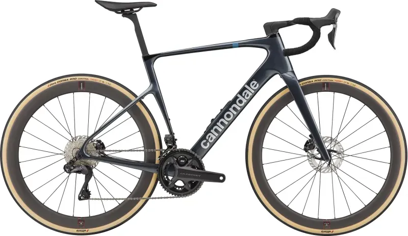 Das exklusive V-förmige Delta-Rohr von Cannondale ermöglicht ein aufgeräumtes Cockpit mit intern geführten Kabeln. Die schmale Steuerrohrfront bringt aerodynamische Vorteile und ein eleganteres, schlankeres Design.